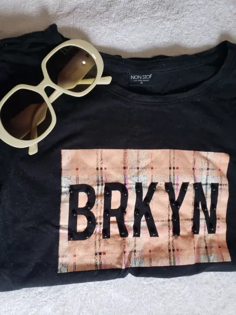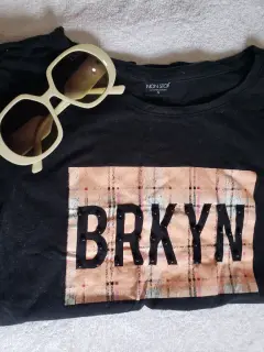 Playera casual estampada. Playera de media vida, con rastros de desgaste en el estampado, color un poco desvanecido y cuello redondo, tela en buen estado.