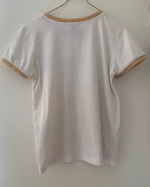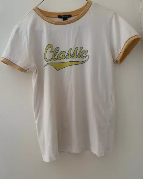 Playera Classic Forever 21 Blanca con letras y bordes Amarillos