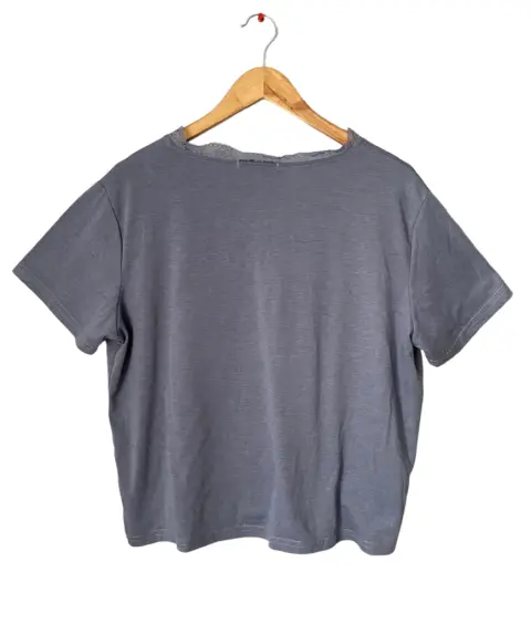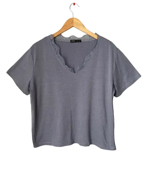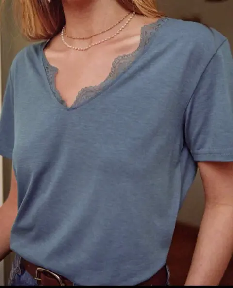 Playera con encaje. Bonita playera azul con escote en “V”Medidas aproximadas: De axila a axila 57 cm Largo 54 cm