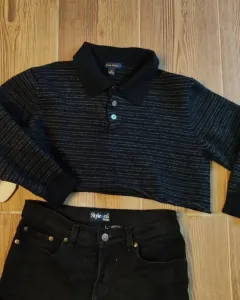Playera crop negra. Hermoso crop estilo poleea con cuello manga de 3/4 de algodón super cómoda y calientita, ojo como es talla S puede queda arribita del ombligo y si queda para XS queda tapando el ombligo