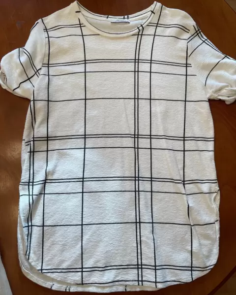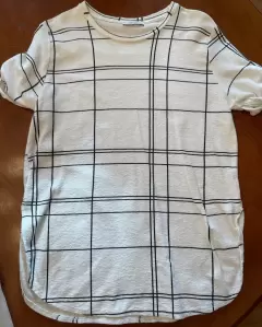 Playera de cuadros. Playera blanca con lineas negras de zara, es un poco larga