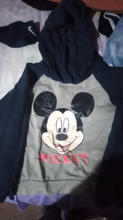 Playera de niño. Linda playera de niño con estampado de miki mouse color gris con azul marino y capucha.