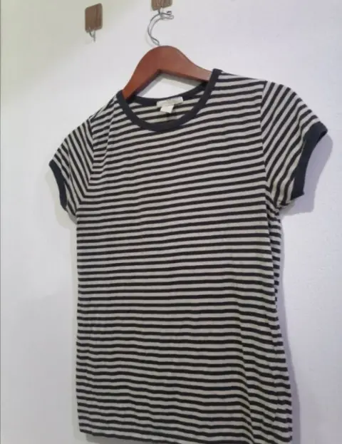 Playera de Rayas. Linda playera de manga corta, básica y fresca perfecta para cualquier ocasión 🌼☁️Talla: S pero también queda a M.Color: CaféSin ningún detalle. :))