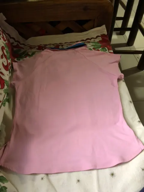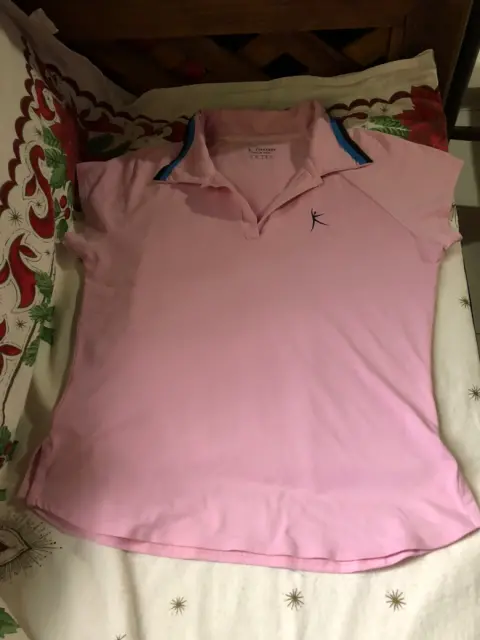 Playera Deportiva Danskin. Playera Deportiva Danskin color Rosa en Lycra, talla grande con cuello V y líneas Azul y negra en este, manga corta.