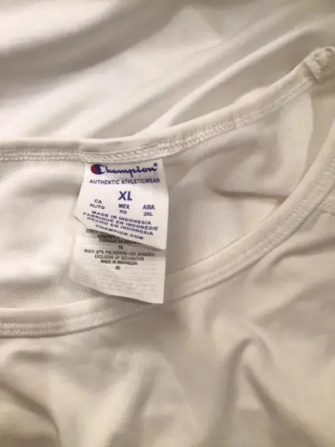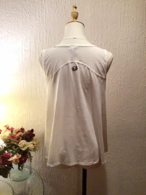 PLAYERA DEPORTIVA MARCA CHAMPION, TALLA XL SIN MANGAS, CON ABERTURA EN LOS COSTADOS, COLOR BLANCO, TELA POLIÉSTER, STRECH MEDIDAS : HOMBROS 31, PECHO 50, LARGO 56; MUY FRESCA COMBINA CON SHORT, ETC.