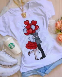 Playera el y ella corazones. Playera manga corta cuello redondo con estampado, tengo todas las tallas: S,M,L y XL, en la compra de 2 0 más te hago un super descuento, te dejo la tabla de medidas, te encantarán, soy fabricante