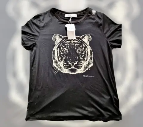 Playera negra, estampado de tigre para dama, talla L marca Maka, color negro