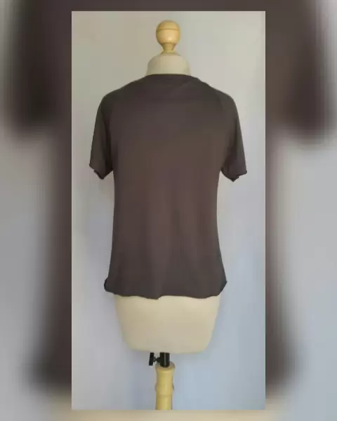 Playera estilo T-shirt estampado Tigre. Playera estilo T-Shirt en color GRIS PIZARRA modelo c/estampado tigre de bengala, cuello redondo y manga corta. Por la composición de la tela es stretch. Talla M. Dimensiones cms: 43 hombro, 49 axila, 52 zona baja, 56 largo, 18 largo manga. 50% algodón, 50% modal. P/lavado en casa.