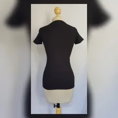 Playera estilo T-Shirt mod Star Wars. Playera estilo T-Shirt en color NEGRO ÉBANO modelo "Star Wars" c/estampado delantero AMARILLO MANGO/BLANCO POLAR, cuello redondo y manga corta. Por la composición de la tela es stretch. Talla G (REDUCIDA, da mejor a M). Dimensiones cms: 33 hombro, 45 axila, 41 cintura, 46 zona baja, 60 largo, 15 largo manga. 95% algodón, 5% elastano. P/lavado en casa.