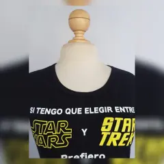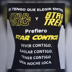 Playera estilo T-Shirt en color NEGRO ÉBANO modelo "Star Contigo" con estampado delantero en tonos BLANCO POLAR y AMARILLO, cuello redondo y manga corta. Por la composición de la tela es stretch. Talla G. Dimensiones cms: 42 hombro, 49 axila, 40 cintura, 46 zona baja, 57 largo, 14.5 largo manga. 95% algodón, 5% elastano. P/lavado en casa.***Esta marca maneja prendas de extraordinaria calidad, su algodón es orgánico y soporta ciclos de lavado en máquina sin problemas, no se deslavan los estampados y las telas salen casi sin arrugas.***