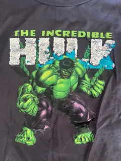 Playera Hulk. Playera de algodón de manga larga, talla 7-8 para niña o niño, con estampado de Hulk y letras de lentejuelas reversibles. Sin detalles, casi nueva. Línea Marvel Avengers.