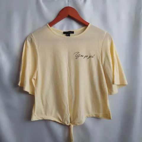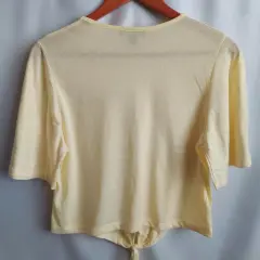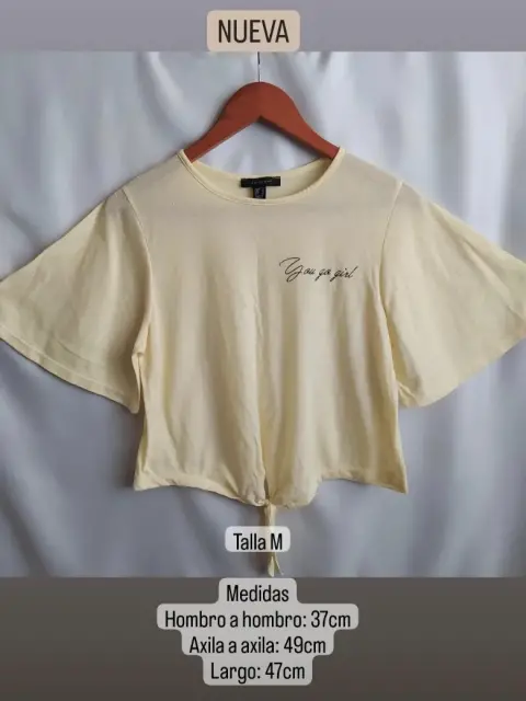Playera corta de color amarillo pastel. Ligera, cómoda y fresca. Nueva. Talla M. Medidas en la última foto. ⭐A $100 para armar en paquete ☺️
