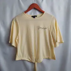 Playera manga corta amarillo pastel. Playera corta de color amarillo pastel. Ligera, cómoda y fresca. Nueva. Talla M. Medidas en la última foto. ⭐A $100 para armar en paquete ☺️