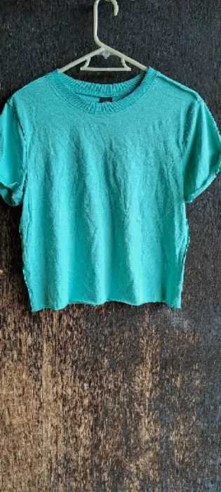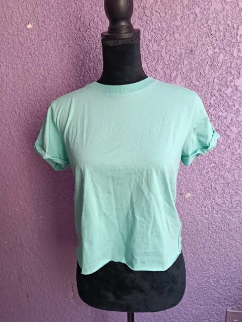 PLAYERA MANGA CORTA TALLA XS. TOP MANGA CORTA ,TALLA XS , COLOR TURQUESA , HOMBRO A HOMBRO 40 CM, LARGO 50 CM,AXILA A AXILA 47CM , HECHO 100% ALGODON