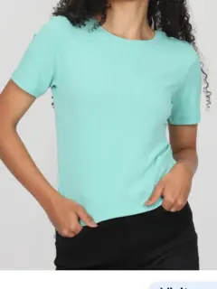TOP MANGA CORTA ,TALLA XS , COLOR TURQUESA , HOMBRO A HOMBRO 40 CM, LARGO 50 CM,AXILA A AXILA 47CM , HECHO 100% ALGODON