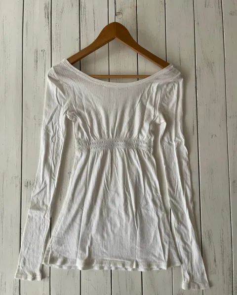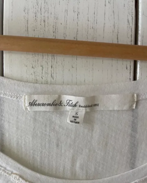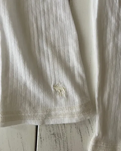 Playera manga larga blanca Abercrombie. Playera blanca de tela ligera y suave, 100% algodón. Talla: SMedidas: 34 cm de axila y 58 cm de largo