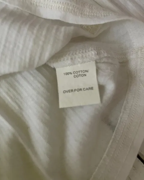 Playera blanca de tela ligera y suave, 100% algodón. Talla: SMedidas: 34 cm de axila y 58 cm de largo