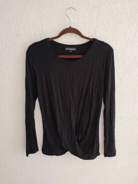 Playera manga larga negra. Playera en manga larga color negro, ligera y que se amolda a tu figura. Medidas: 64cm largo, 44cm de axila a axila y 60cm de mangas.
