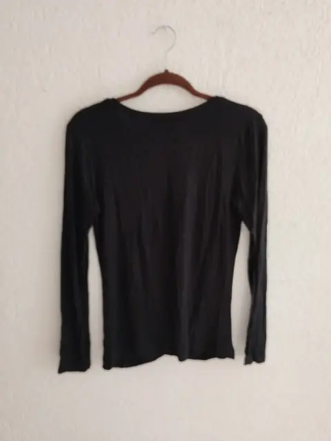 Playera en manga larga color negro, ligera y que se amolda a tu figura. Medidas: 64cm largo, 44cm de axila a axila y 60cm de mangas.