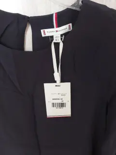 Playera color azul marino de Tommy Hilfiger, con botón el la parte de la nuca, logotipo de la firma en un costado.