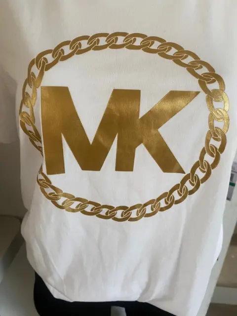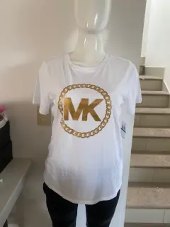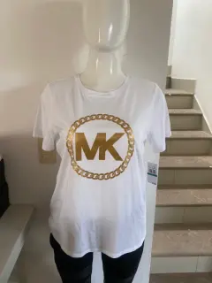 PLAYERA BASICA MICHAEL KORS COLOR BLANCA, con estampado de la Marca al frente en color dorado plastificado. TOTALMENTE NUEVA CON ETIQUETAS.