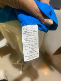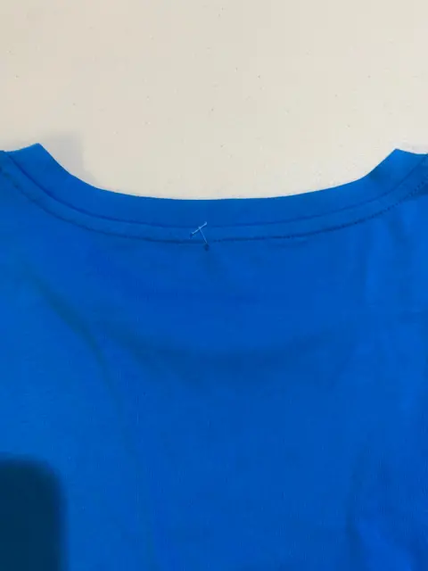 PLAYERA COLOR AZUL REY CON MARCA VISIBLE AL FRENTE COLOR BLANCO PLASTIFICADO, totalmente nueva con etiqueta de papel. TIENE UN DETALLE QUE SE MUESTRA EN LAS ÚLTIMAS FOTOS POR EL PLÁSTICO DE LA ETIQUETA SE LE HIZO UN PEQUEÑITO HOYO.