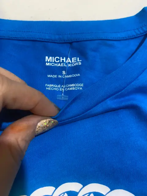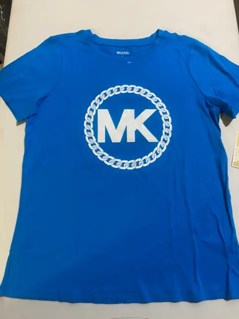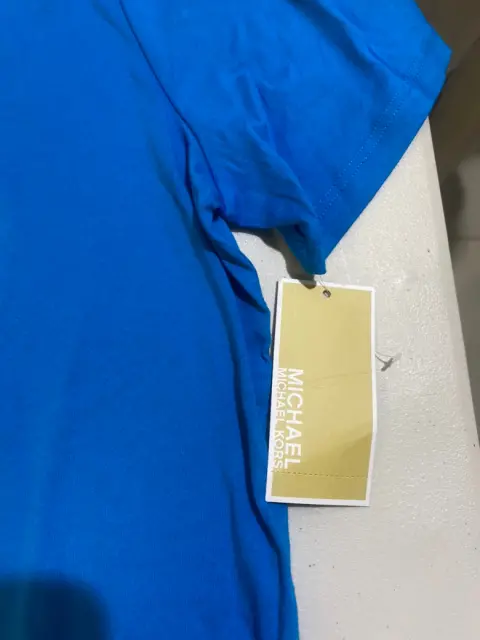PLAYERA MICHAEL KORS TALLA Mediana. PLAYERA COLOR AZUL REY CON MARCA VISIBLE AL FRENTE COLOR BLANCO PLASTIFICADO, totalmente nueva con etiqueta de papel. TIENE UN DETALLE QUE SE MUESTRA EN LAS ÚLTIMAS FOTOS POR EL PLÁSTICO DE LA ETIQUETA SE LE HIZO UN PEQUEÑITO HOYO.