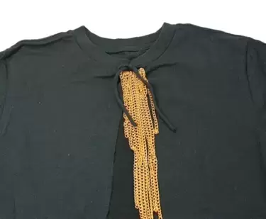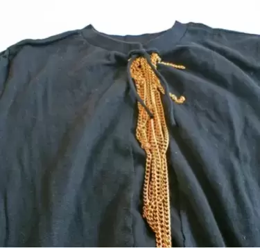 Playera negra con cadenas talla M, tiene al frente un área transparente, muy linda y de moda.