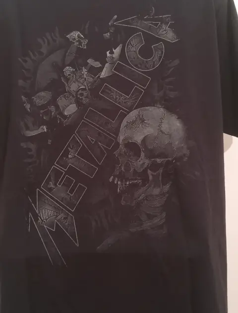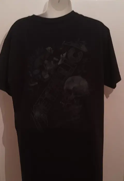 Bonita playera color negra, manga corta, estampado en ambos lados, talla G, mide en hombros 46 cm, en pecho 52 cm, en cintura 52 cm y de largo tiene 78 cm. Tela gruesa, muy bonita, nueva a estrenar