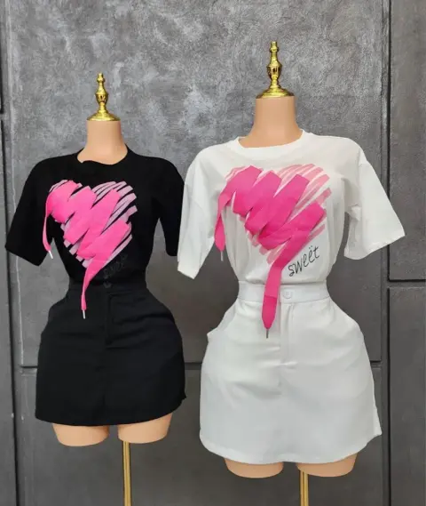 Playera nueva, color blanco, con estampado de agujetas rosa, talla grande. Es cómoda y amplia