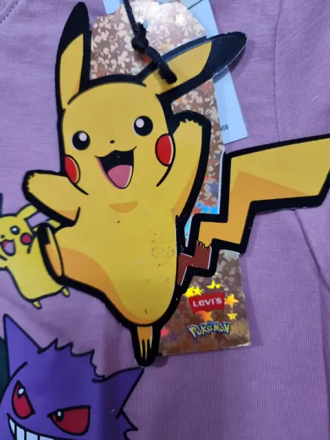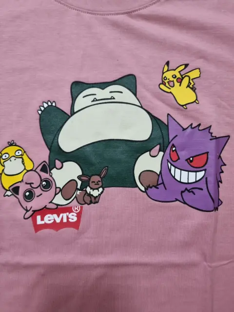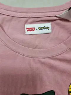 Playera para dama, marca Levi’s, aniversario pokemon, color rosa, talla m, con estampado pokemon al frente, cuello redondo y mangas cortas.
