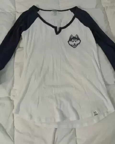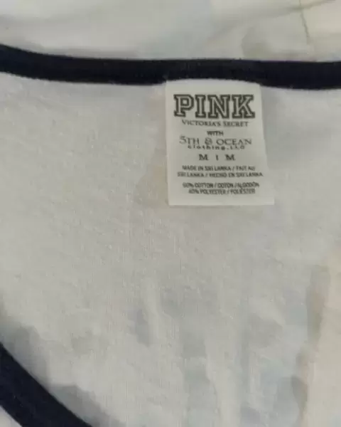 Playera Pink !!. Linda playera , manga 3/4 , color blanco y Azul rey ,logo de la marca y letras en la espalda en color plata , T/M