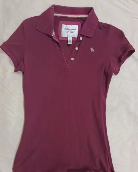 Playera tipo polo de marca Abercrombie and Fitch, talla S, color guinda
