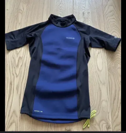 Playera surf niño protección solar olaian neopreno talla 8manga corta azulCreado por nuestros equipos de diseño para protegerse del sol durante el surf y bodyboard.Agua con T° sup. a 21 °C. Sesiones de hasta 3 h (aporte de calor)