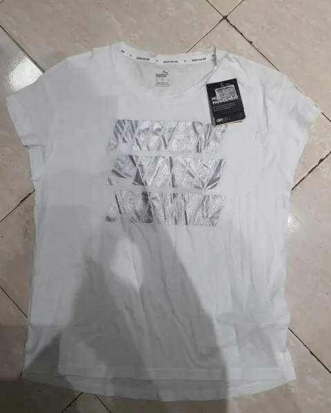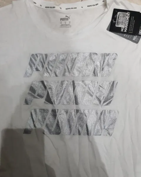 Playera marca PUMA en color blanco, el estampado es plata y brilla muy bonito, es talla M y va holgada, completamente nueva y original!!!
