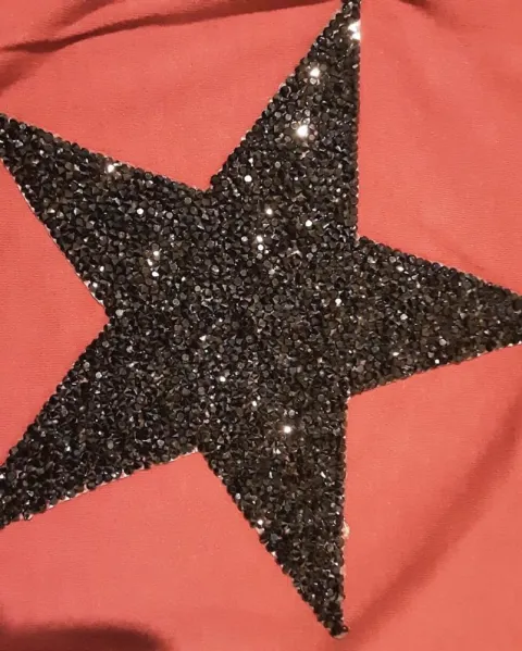Playera sin mangas con aplicación de estrella en medio color negro (Talla M, 60 cm de largo y 49 cm de axila a axila )