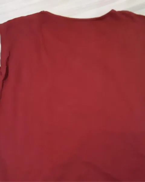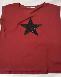 Playera roja SFERA BASIC. Playera sin mangas con aplicación de estrella en medio color negro (Talla M, 60 cm de largo y 49 cm de axila a axila )