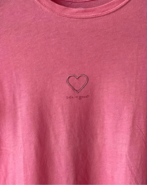 Playera rosa Life is good. Talla: S, 100% algodón, muy ligera y fresca. Manga corta. Medidas: 46 cm de axila, 36.5 cm de hombros y 55 cm de largo.