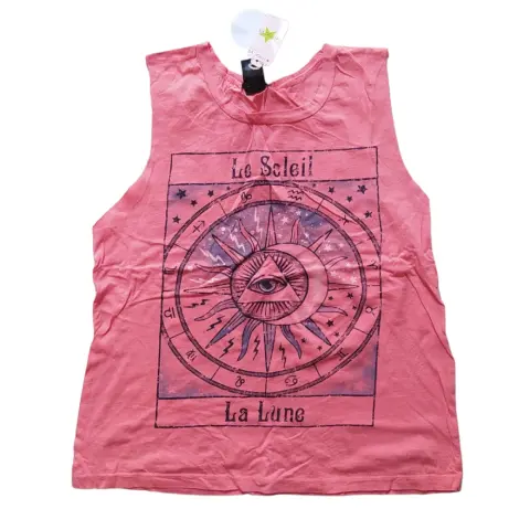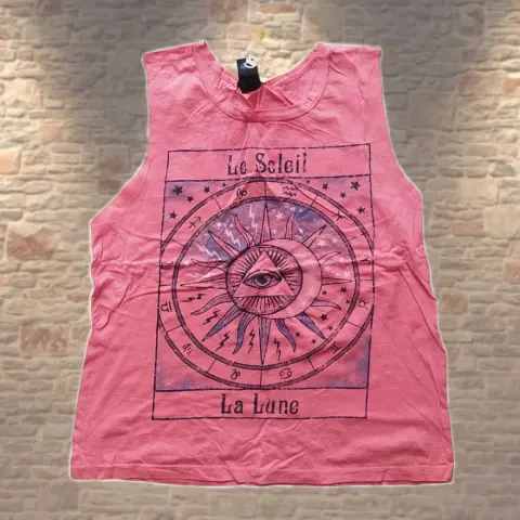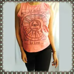 Playera rosa sin mangas. Playera rosa con estampado, marca Wet Seal, talla S. 100% algodón, muy ligera y fresca.Hombro a hombro 30 cm.Axila a axila 43 cm.Largo total 54 cm.Si te gusta otra prenda, podemos negociar el precio.