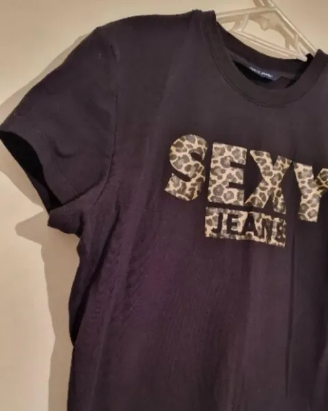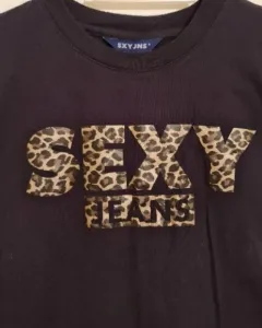 PLAYERA SEXY JEANS!NEGRA ANIMAL PRINT. PLAYERITA Animal Print de diseño en letras de la afamada MARCA SEXY JEANS ,LIGERAMENTE CORTA JUSTO A LA CINTURA.Talla:Unitalla .Puede quedar a talla Mediana incluso Grande en talla 34.Tela Algodon