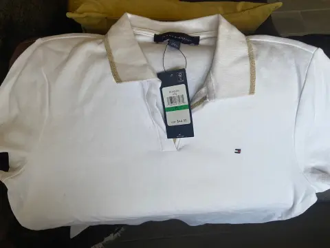 Playera tipo polo Tommy. Padrísima playera tipo polo en color blanco talla PL Medidas: hombros 41cm, axila a axila 47cm y largo 60cm
