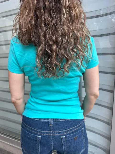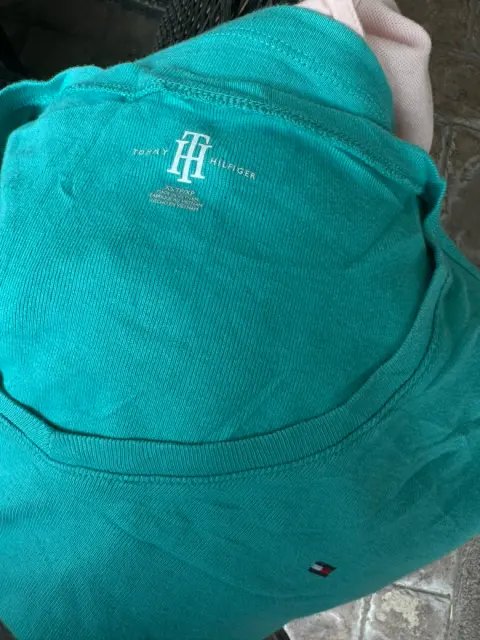 Playera tommy sin detalles talla XS, queda bien a talla S, con mucho strecthb es cómoda y bonita color vivo y no es calurosa