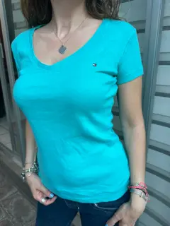 Playera tommy. Playera tommy sin detalles talla XS, queda bien a talla S, con mucho strecthb es cómoda y bonita color vivo y no es calurosa