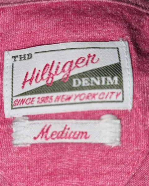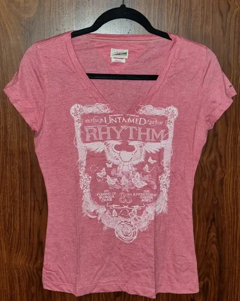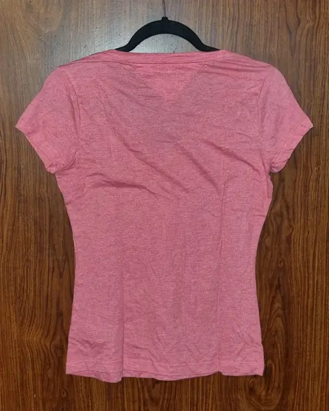 Playera manga corta marca Tommy Hilfiger color coral, talla M, sin detalles.