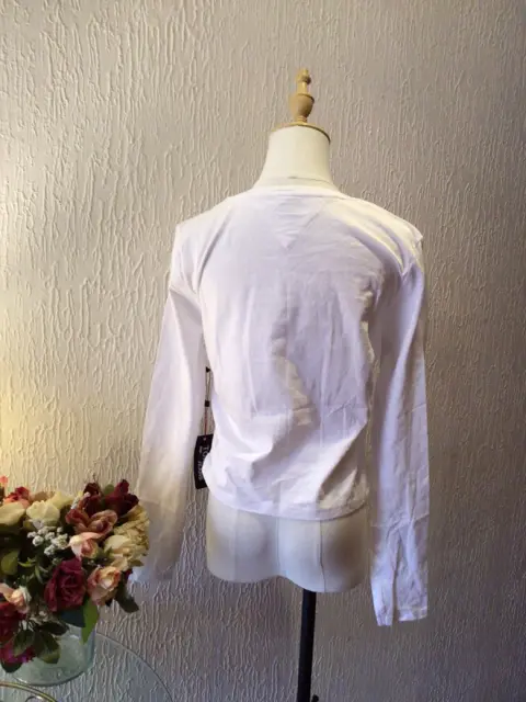 PLAYERA MARCA TOMMY JEANS TALLA MEDIANA, MANGA LARGA CON ETIQUETA DE ALGODÓN, MUY CÓMODA Y FRESCA, COMBINA CON TODO NO TIENE DETALLES REALMENTE BONITA CON PLIEGUES EN LOS COSTADOS COLOR BLANCO