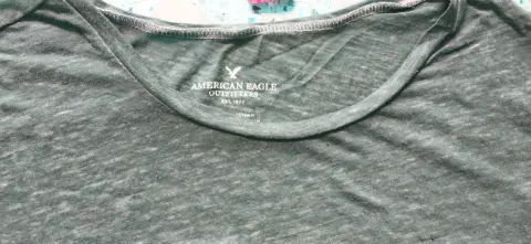 Playera verde militar con leyenda 'hug more' en bolsa frontal , marca American Eagle Outfitters, talla M. Compuesto de 63% poliéster y 27% algodón. Es muy fresca y estira. Sin detalles.MEDIDASHombro a hombro 42 cm.Axila a axila 45 cm.Largo total 65 cm.