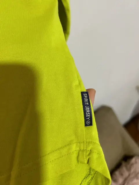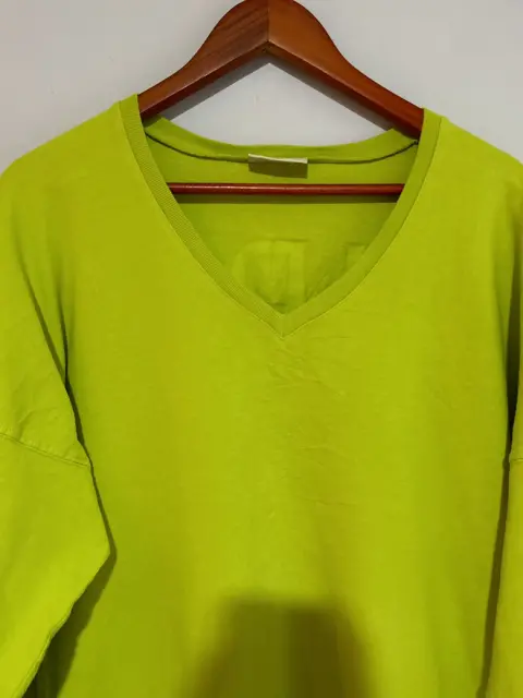 Playera verde lima. ✅playera manga larga ✅color verde lima ✅súper bonita 😍 ✅en buen estado ✅tiene pequeñas manchas en una letra se aprecia en la última foto ✅aprovecha súper precio 😀✅talla S recomiendo para una M ✅sus medidas son : de axila a axila 55 cm y largo 68 cm