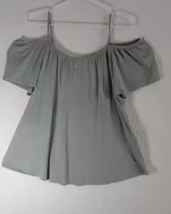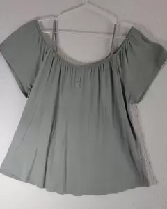 Playera verde lisa con manga corta y tirantes. Playera casual con tirantes y hombros caídos Botones decorativos al frenteIdeal con pantalón de mezclillaBasica en todo guarda ropa