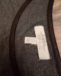 Playera Zara Gris Manga 3/4. Playera gris oscuro marca Zara, manga 3/4. Tela muy fluida, el detalle de las mangas es una tela que al tacto se siente como terciopelo pero se ve como si fuera textura o estampado animal print. Talla M.