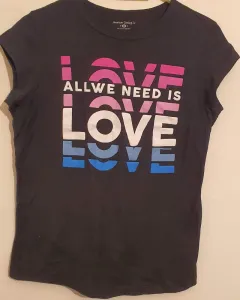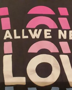 PLAYERITA NEGRA LOVE LOVE !! ALL WE NEED IS. Linda playerita negra!!! Estampado ALL WE NEED IS LOVE / COLORES / ALGODON/ MANGA CORTA/ TALLA: S/ M !!